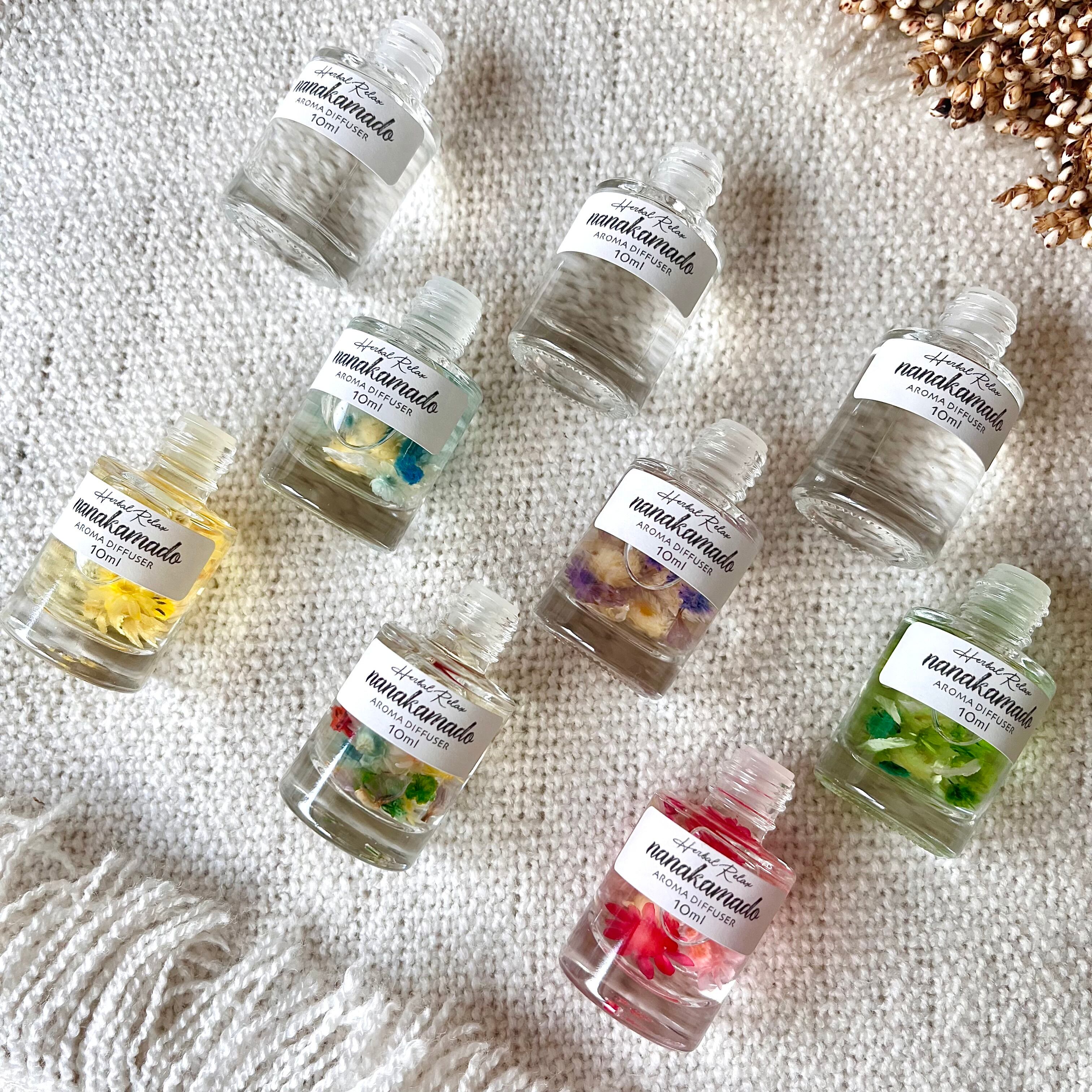 "nanakamadoのアロマデュフューザー"は、無水エタノール、アロマオイル(精油)、グリセリンをブレンドしたおしゃれなフレグランスアイテムです。