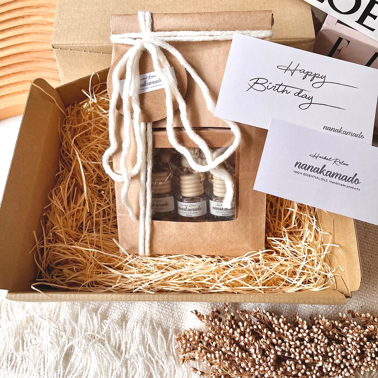 ※写真はアロマサシェ・アロマキャンドル・nanakamado gift set・モイストポプリ&ドライフラワーset・アロマ缶キャンドル・nanakamadoディフューザー3種類setを入れたイメージです